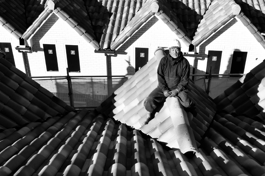 山村親方、山村健、山村光が手掛けるのは、「とび抜けた建物」本物の日本瓦を使う、寺社仏閣。本物の輸入瓦を使う、高級邸宅。高い技術力と長い経験が必要な現場の第一線で、常に上を見て、挑戦を続ける山村一家。日本の伝統技術と海外の技術を共に極め、日本全国から指名の入る著名な職人一家。話すと気さくだが、職人として屋根に上がると一瞬で精悍に変わる眼。これまでに手掛けた屋根は1,000棟を越え、その経験は技術として裏打ちされている。同じ瓦を使っても、納める職人によって仕上がりが変わる屋根。こだわりをもって、違いの分かる屋根を提供することのできる「職人」である。