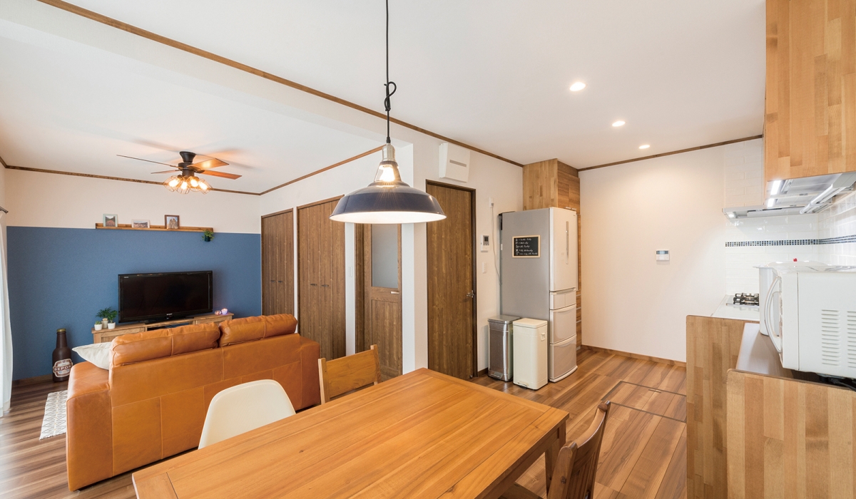 ご家族経営ならではのアットホームさも信頼できましたね。「難しいですけど…」といいながら、出来る方法を親身に考えてくれたところも、大きな決め手になりました。これまではダイニングキッチンとリビングが別空間だったため、とても使いづらい家でした。 リビングで過ごす時間が一番長いこともあり、ダイニングキッチンとリビングを一つの大空間にしました。子供たちも走り回れる広々リビングになり気に入っています。
